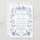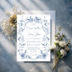Dusty blue floral greenery ribbon elegant wedding invitation