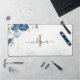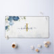 Dusty Blue Floral Monogram Name Elegant Desk Mat