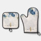 Dusty Blue Floral Monogram Script Personalised Oven Mitt & Pot Holder Set