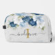 Dusty Blue Floral Monogram Script Watercolor Dopp Kit