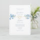 This elegant dusty blue floral wedding invitation beautifully combines classic romance with modern convenience. Featuring delicate blue floral accents and a golden heart detail on the front, it captures a timeless charm. The reverse side includes a personalised photo of the couple and a convenient QR code for easy RSVP, making it both stylish and practical. Perfect for spring and summer weddings, this design offers a seamless blend of tradition and modern technology.