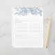 This Elegant Dusty Blue Floral Bridal Shower Recipe Page is elegant, modern, chic, and charming - perfect for a garden, botanical, rustic, romantic, floral, formal or vintage wedding. Its exquisite combination of graceful dusty blue roses and wispy foliage is flowy, delicate, and beautiful. Its monochromatic design is stunning and classic. Include one page with every shower invitation asking the guests to share their favourite recipe with the bride. You'll be amazed at how varied the type of recipes will be and how grateful the bride will be to have a set of tried and true recipes to cook for her beloved groom. As guests arrive you can either 3-hole punch the recipe pages (or even better) slip them into 8.5 x 11 page protector sheets and put them in the Elegant Black White Floral Recipe Binder. The protector sheets will make using the recipes easy and they will keep them clean over the years. The bride will cherish such a thoughtful and useful gift!
