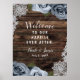 Dusty Blue Floral Roses Rustic Wood & Lace Wedding Poster