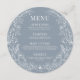 Step into timeless sophistication with our rustic bohemian spring/summer round wedding menu card, featuring a charming wreath of delicate wildflower blooms in dusty blue hues. Elevate your wedding dining experience with this elegant addition, perfect for adding a touch of refinement to your celebration. Ideal for rustic, bohemian, and outdoor wedding themes.