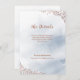 Elegant wedding insert card with rustic floral design in copper brown colour on serenity dusty blue watercolor background, great for modern rustic wedding, spring wedding or winter wedding.