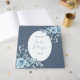 Dusty Blue Floral Script Elegant Wedding Guest Book. Capture cherished memories from your special day with this elegant vintage blue floral wedding guest book. Adorned with beautiful whimsical blue florals and delicate blossoms, this book sets a romantic tone for guests to leave their well wishes. The oval frame elegantly displays 'Our Wedding' along with the couple's names and date, making it a personal keepsake. This guest book is perfect for preserving messages, advice, and memories from your loved ones, creating a treasured memento of your wedding celebration that you can revisit for years to come, that matches your wedding theme perfectly!