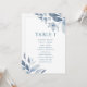 This dusty blue floral table number seating card is perfect for a romantic, outdoor wedding or a chic, modern celebration.