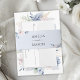 Dusty Blue Floral Watercolor Wedding Invitation Belly Band. Wrap your wedding invitations in delicate beauty with this dusty blue floral watercolor belly band. Featuring a serene blue background adorned with gentle watercolor blooms in blush pink, dusty rose, and muted greens, this band adds a touch of romantic elegance to your stationery. The names of the bride and groom are elegantly scripted in a classic font, creating a sophisticated and personalised touch that perfectly complements a modern or bohemian wedding theme. This beautiful belly band will ensure your invitations make a stunning first impression. Mix and match with other products in this wedding suite.
