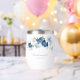 Customise this wedding gift glass for the wedding party by clicking the "Personalise" button. The Wine Tumbler features a modern elegant chic dusty blue flowers with white, light blue, and olive green bloom. TIP: Great for surprise parties, baby showers, wedding reception, and retirement parties.