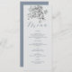 Present your wedding meal with style using this elegant dusty blue floral menu. Soft silver-toned watercolor blossoms and graceful calligraphy create a romantic, refined look. Perfect for winter or minimalist weddings, this menu adds a delicate touch of nature-inspired charm to your reception table setting.