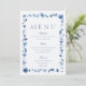 Soft watercolor flowers in dusty blue tones frame the menu while maintaining a clean and airy layout that is easy for guests to read. This design is perfect for fine art weddings, garden celebrations, and elegant estate receptions.