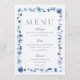 Dusty Blue Floral Wedding Menu Card