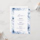 Dusty Blue Floral Wedding Menu Card