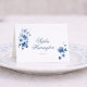 Personalize with guest names and table numbers to guide guests to their seats in style. This design pairs beautifully with dusty blue wedding palettes and floral wedding décor.