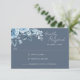 Dusty Blue Floral Wedding Response Card. Capture the essence of a romantic garden wedding with this stunning dusty blue floral watercolor response card. Delicate blue and grey blossoms cascade across the top corner, adding a touch of timeless elegance to your wedding stationery. The elegant script font for "Kindly Respond" and the clear, easy-to-read text for guest information make it simple for your loved ones to reply. This card perfectly complements a dusty blue, vintage, or garden-themed wedding. Ensure your RSVPs are received in style with this beautifully designed response card.