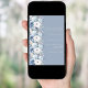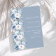 A dusty blue background, decorated with blue and white coloured flowers. Personalise and add your names and details.