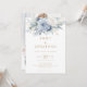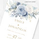 Dusty Blue Florals Photo Gold Text QR Code Wedding. Available digitally and printed. Elegant florals summery light blue and white, flow down from the top. Easily personalise the text to your own details. Replace the sample image on the back with your own. Add your QR code to your wedding website on the back makes this a convenient option for your guests to RSVP and see all the details without the need for separate RSVP and details cards. Your QR code will be automatically generated to update the sample code in the design, when you simply change the sample URL in the template with your own wedding website URL.