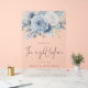 Dusty Blue Florals Welcome To The Night Before Wedding Rehearsal Dinner. Summery vibes with beautiful light blue flowers! The Night Before is in a set handwriting style script and easily personalise the rest of the text as required.