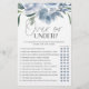 Over or Under bridal shower game. Dusty Blue Flowers Bridal Shower Game. Matching items to complete your event collection are available in our Zazzle store!