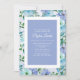 Beautiful and elegant dusty blue watercolor floral and foliage botanical bridal shower invitation with an elegant script font.