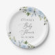 Dusty Blue Flowers, Greenery, Boho, Baby Shower Paper Plate