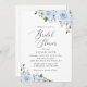 Invite friends and family in style and set the tone for your special day with this charming bridal shower invitation. Design features dusty blue watercolor flowers and greenery on white background.