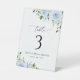 Dusty Blue Flowers, Greenery, Boho, Table Numbers Pedestal Sign