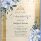 Dusty Blue Gold Floral Quinceañera Invitation
