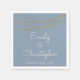 Dusty Blue and Faux Gold Foil String Lights Wedding Napkins for a Elegant Wedding Reception or Rehearsal Dinner. The name and date can be updated on this napkin.