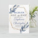 Dusty Blue Gold Frame Eucalyptus Save the Date Invitation