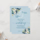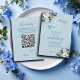 Dusty Blue Gold Glitter Floral QR Code Wedding Invitation