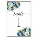Dusty Blue Gold Glitter Floral Table Number