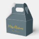 Surprise your holiday party guests with these Dusty Blue Gold Merry Christmas Script Custom Favour Boxes. This simple and elegant design has the customisable greeting "Merry Christmas" in faux gold trendy hand script lettering on the middle front of box. The background is dusty blue and you can change to any colour. Personalised with family name or your custom text in simple print lettering.