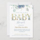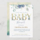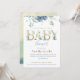 Gold Blue Watercolor Floral Baby Shower Invite is a very elegant design that includes big gold letters saying BABY decorated with pastel dusty blue watercolor florals. The same style of florals decorate the top and the bottom of the card. The text on the front is fully custoimizable. The back is a blue watercolor wash.