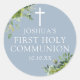 This elegant eucalyptus greenery botanical dusty blue first holy communion sticker can be personalised with your information in chic typography. Designed by Thisisnotme©