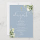 Dusty Blue Greenery Floral Chrzest Baptism Invitation