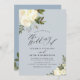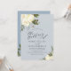 Dusty blue greenery ivory floral wedding invitation