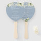 Dusty Blue Greenery Lights Wedding Program Heart Hand Fan