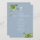 Dusty Blue Greenery Monogram First Holy Communion Invitation