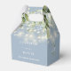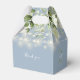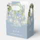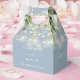 Elegant dusty blue floral greenery string lights wedding favour box personalised with your names, monogram initials, wedding date and special message. Designed by Thisisnotme©