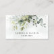 An alternative to traditional response cards, this item allows you to inform your guests of your wedding website to RSVP without mailing back responses. Design features a bouquet of watercolor greenery, eucalyptus and a succulent over a dusty blue watercolor splash. Design also features specks of painted (printed) gold and green. View the collection link on this page to see all of the matching items in this beautiful design.
