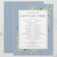 This stylish botanical greenery blue wedding schedule-timeline can be personalised with your wedding details in chic typography. Designed by Thisisnotme©