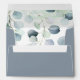 These envelopes match the wedding invitations found in the Dusty Blue & Sage Green Eucalyptus Wedding Collection. This envelope is dusty blue grey on the outside of the envelope and the inside is a pattern of eucalyptus leaves in dusty blue and sage green. There is an outline of a eucalyptus leaf in white on the back top flap. Don't forget to change the address on the back top flap. If you don't want an address, simply delete the text.