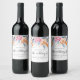 Blue Grey Pink Orange Floral Wedding Wine Label.