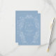 Dusty blue hand drawn fleur de lis blossom and butterflies line art border wedding RSVP. In white on a soft light grey blue. Matching invitations and other matching items and colour options available. © Original hand line drawing and design by Sarah Trett for www.mylittleedenweddings.com on zazzle.
