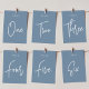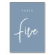 Simple and chic table number cards in Dusty Blue and white make an elegant statement at your wedding or event. Design features "table [number]" in an eyecatching mix of classic serif and handwritten script lettering. Design repeats on both sides. Individually numbered cards sold separately; order each table number individually from our collection.