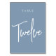 Simple and chic table number cards in Dusty Blue and white make an elegant statement at your wedding or event. Design features "table [number]" in an eyecatching mix of classic serif and handwritten script lettering. Design repeats on both sides. Individually numbered cards sold separately; order each table number individually from our collection.