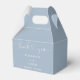 Elegant dusty blue heart script wedding favour box personalised with your names and wedding date. Designed by Thisisnotme©