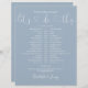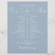 This stylish wedding schedule-timeline can be personalised with your wedding details in chic lettering on a dusty blue background. Designed by Thisisnotme©