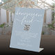 An elegant dusty blue honeymoon fund sign, personalised with your special message, names and wishing well QR code. Designed by Thisisnotme©